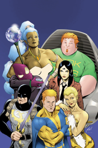 The Planetary Brigade is a team of mismatched superheroes from the writers of Justice League International. Captain Valour, the Grim Knight and Earth Mother are analogues of Superman, Batman and Wonder Woman, the first two played for laughs, as if the chummy Superman of the fifties teamed up with the Batman of the nineties. Purring Pussycat is a former supervillain who joined the team after becoming disenchanted with mentor Mister Master, two feuding brothers in one body who will destroy the world if he can’t conquer it. Mister Brilliant is an obese genius in a weaponised hoverchair who runs a comic book store in his spare time.